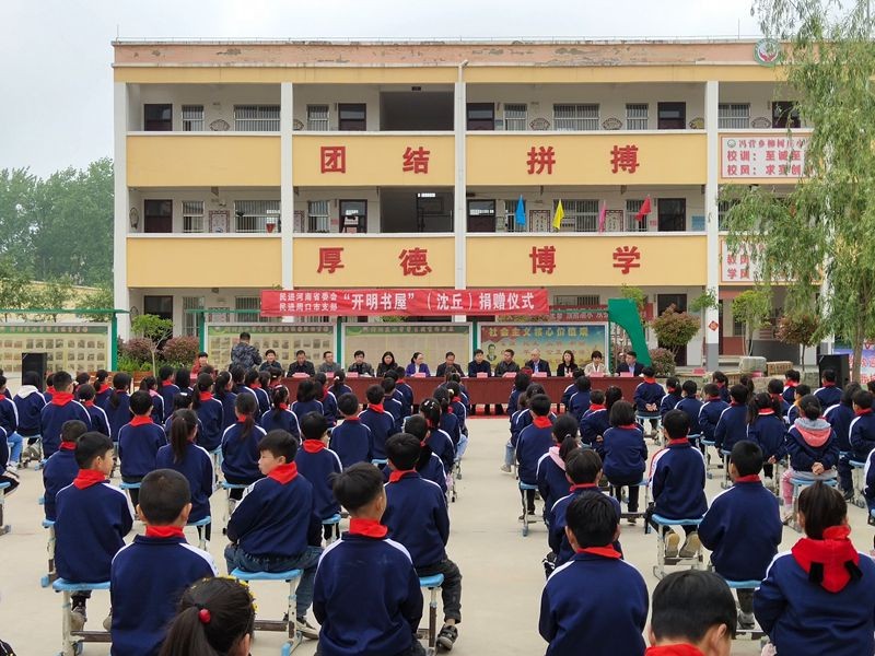4月26日上午,民进河南省委会联合民进周口市支部向沈丘县柳树庄小学和思源实验学校各捐赠一所开明书屋。民进河南省委会二级巡视员王彩虹,中共周口市委统战部四级调研员张辉等出席捐赠活动,捐赠仪式由民进周口市支部、周口师范学院教育科学学院院长田学岭主持。