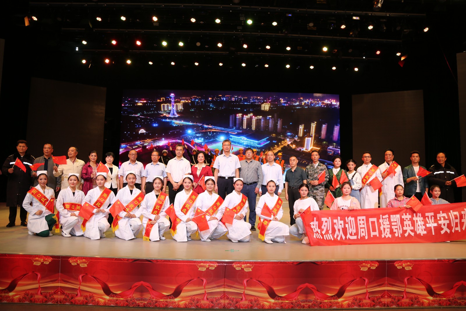 在中华人民共和国成立71周年、中国共产党领导的多党合作和政治协商制度确立71周年之际,9月29日下午,由民革周口市委会创作,民革周口中山艺术团演出的大型现代抗疫戏剧《小家大爱》首场公演在广电奥斯卡演播大厅隆重举行。市委常委、统战部长赵锡昌,市人大常委会副主任、民建周口市委会主委程新华,副市长秦胜军,与我市各界群众一起欢聚一堂,共同观看演出。